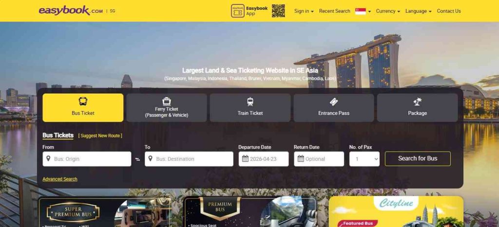 Easybook is a comprehensive transport booking platform that covers buses, trains, ferries, and even local tours across Southeast Asia. For the Singapore to KL route, Easybook truly shines.